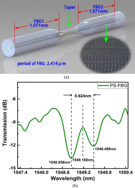 Taper Embedded Phase-Shifted Fiber Bragg Grating Fabricated by Femtosecond Laser Line-by-Line Inscription