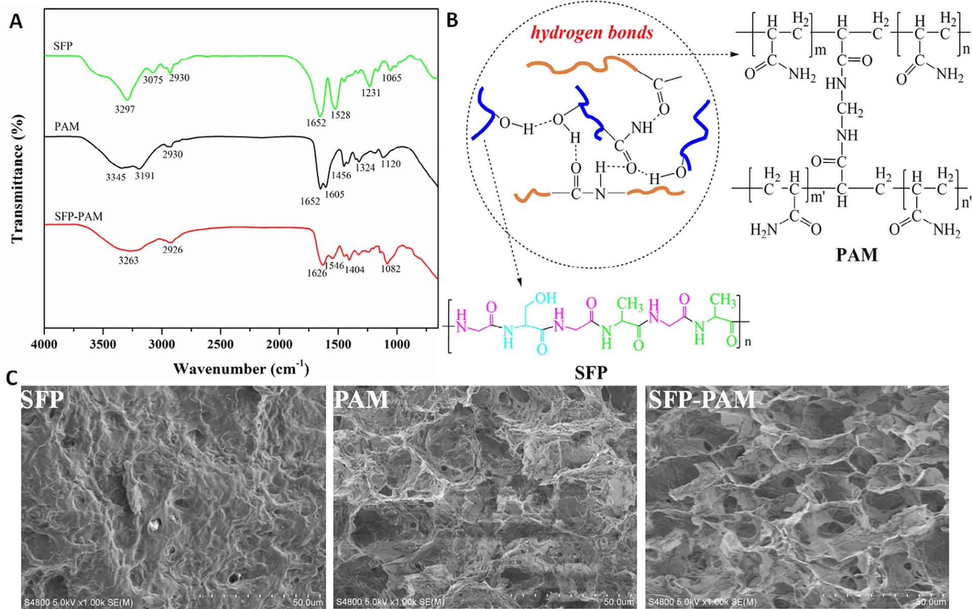 A novel highly stretchable, adhesive and self-healing silk fibroin powder-based hydrogel containing dual-network structure