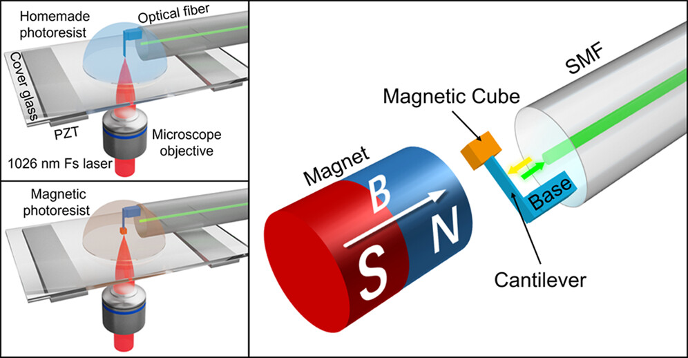 Four-Dimensional Printing of a Fiber-Tip Multimaterial Microcantilever as a Magnetic Field Sensor