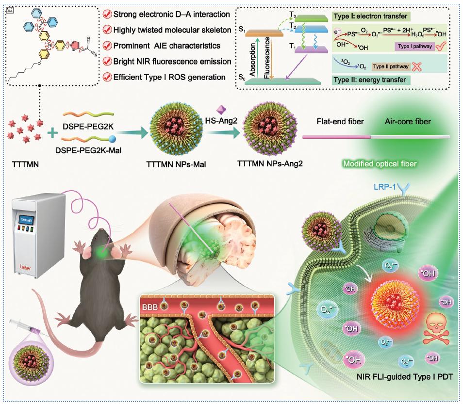Fiber Optic-Mediated Type I Photodynamic Therapy of Brain Glioblastoma Based on an Aggregation-Induced Emission Photosensitizer
