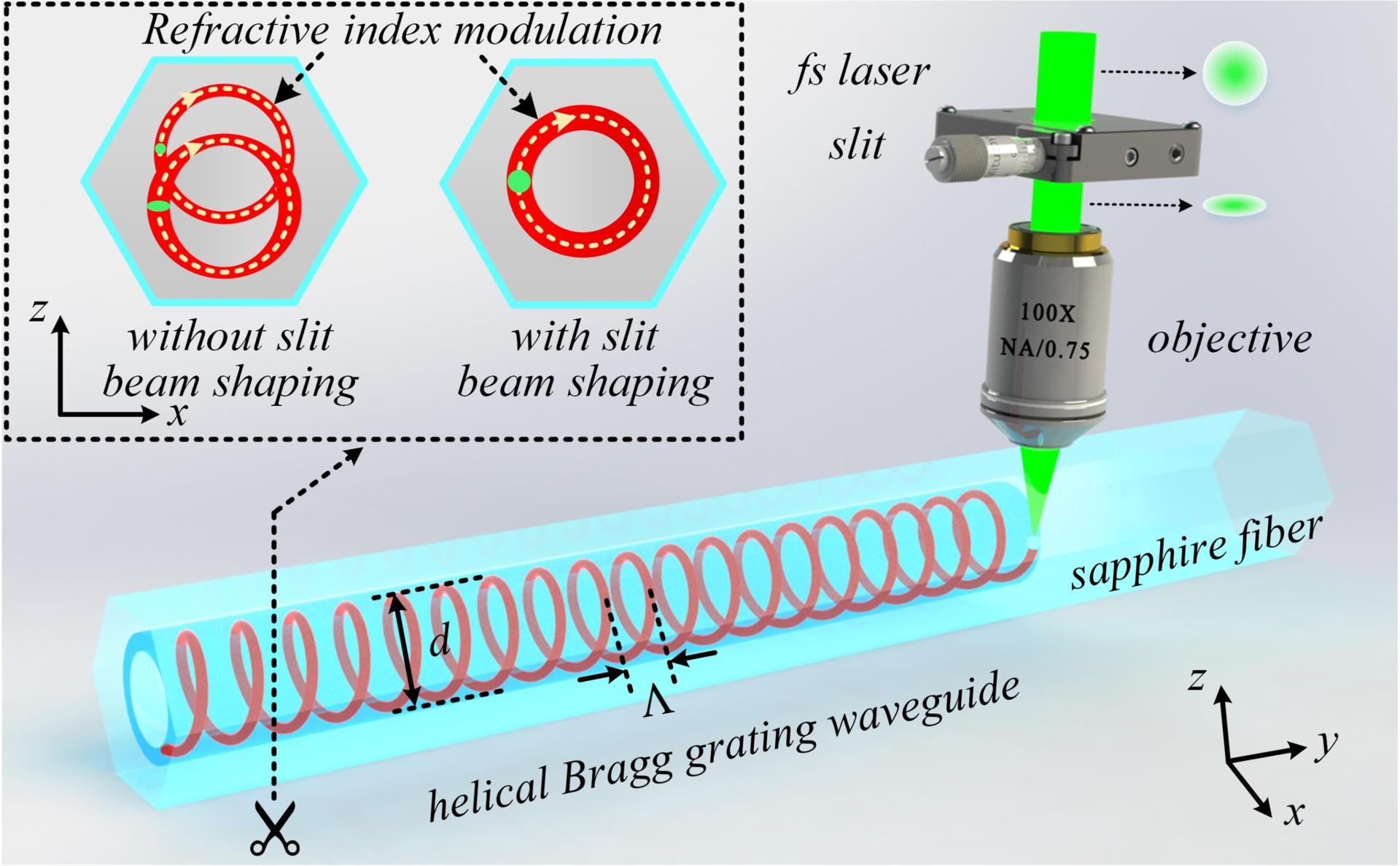 Single-mode helical sapphire bragg grating for high-temperature sensing