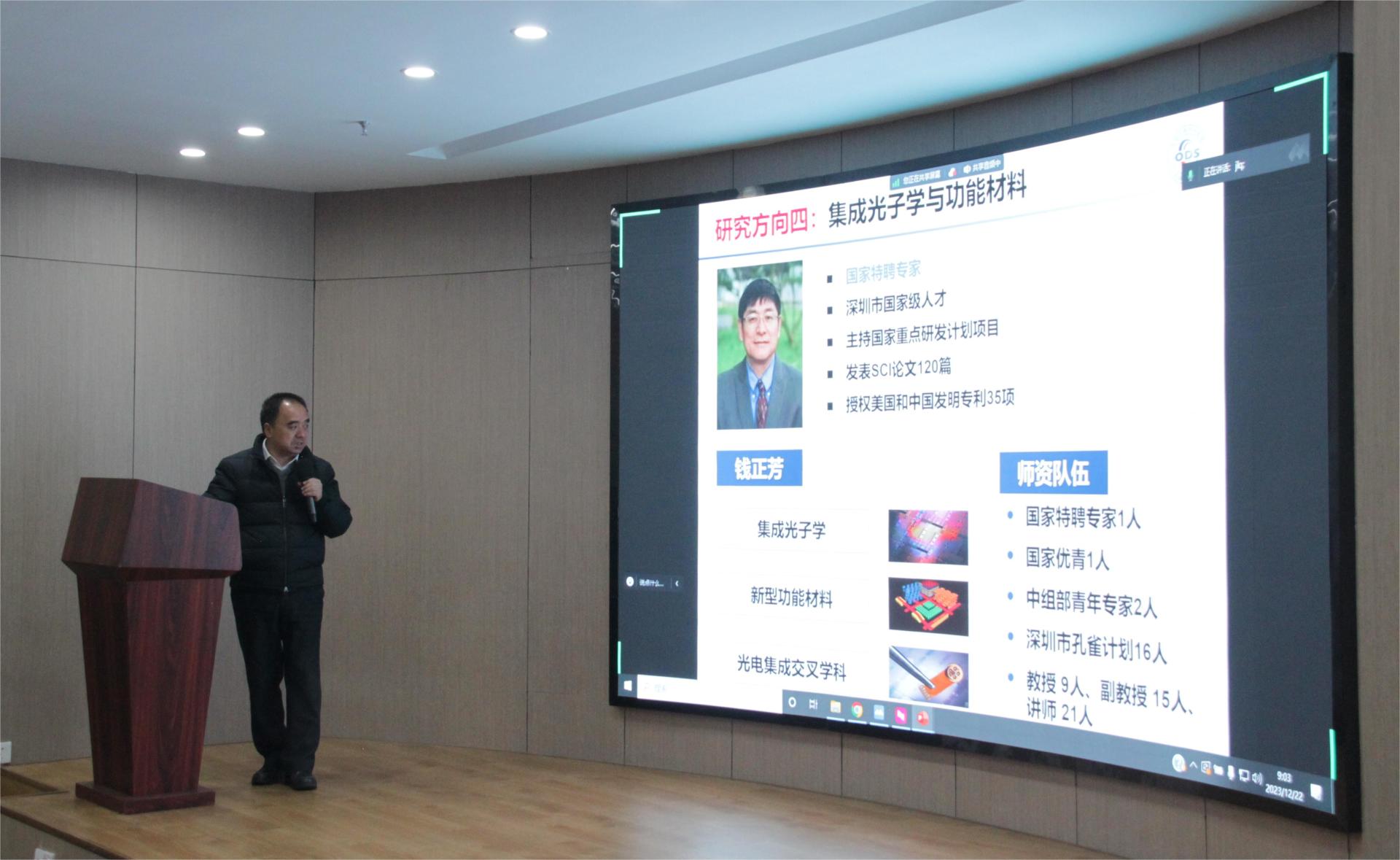 2023年12月22日,深圳大学光电子器件与系统教育部/广东省重点实验室(以下简称重点实验室)在深圳大学光电所顺利召开了第四届第四次学术委员会会议,线上线下同步进行。深圳大学张学记副校长、重点实验室学术委员会主任罗先刚院士、范滇元院士、于起峰院士、秦玉文教授、刘旭教授、王涌天教授、张新亮教授、赵勇教授、李宝军教授、李朝晖教授、周建英教授、程亚教授、曾和平教授、魏勋斌教授、袁小聪教授、屈军乐教授等学术委员会委员,物理光电工程学院林兵书记、常务副院长刘丽炜教授以及重点实验室主任王义平教授和相关成员等出席本次会议。