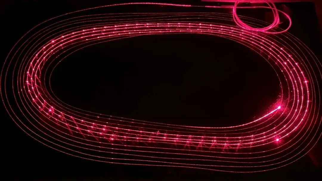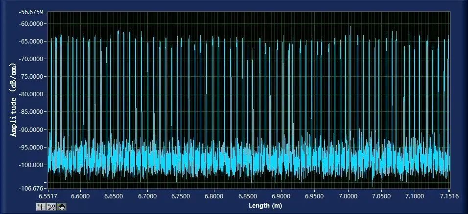 The grating wavelength of the large-scale weak-reflection fiber grating array unveiled onsite is 1550 nm, minimum grating length is <0.5 mm, minimum grating pitch is <0.5 mm, minimum reflectivity is <1/100000, grating quantity is >10,000, extinction ratio is 15 dB.