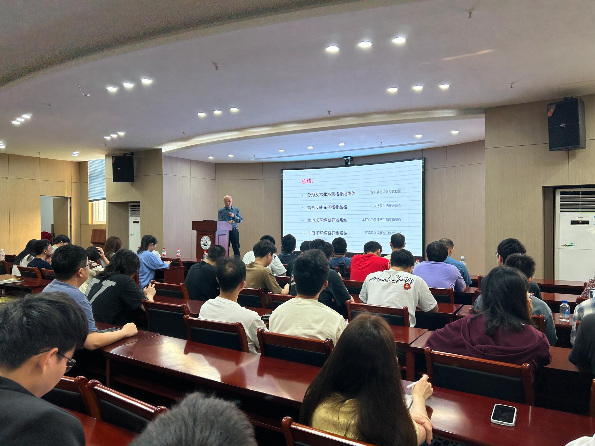 李焱教授在报告中回顾了自己的科研历程,详细介绍了其团队基于飞秒激光直写技术,实现灵活精确地构造和调控复杂波导阵列的结构和参数,并制备多种三维拓扑光子元器件的研究成果。报告内容包括分形反常弗洛凯拓扑绝缘体、耦合反转光子拓扑晶格、非厄米环绕奇异点系统和非厄米环绕奇异线系统。