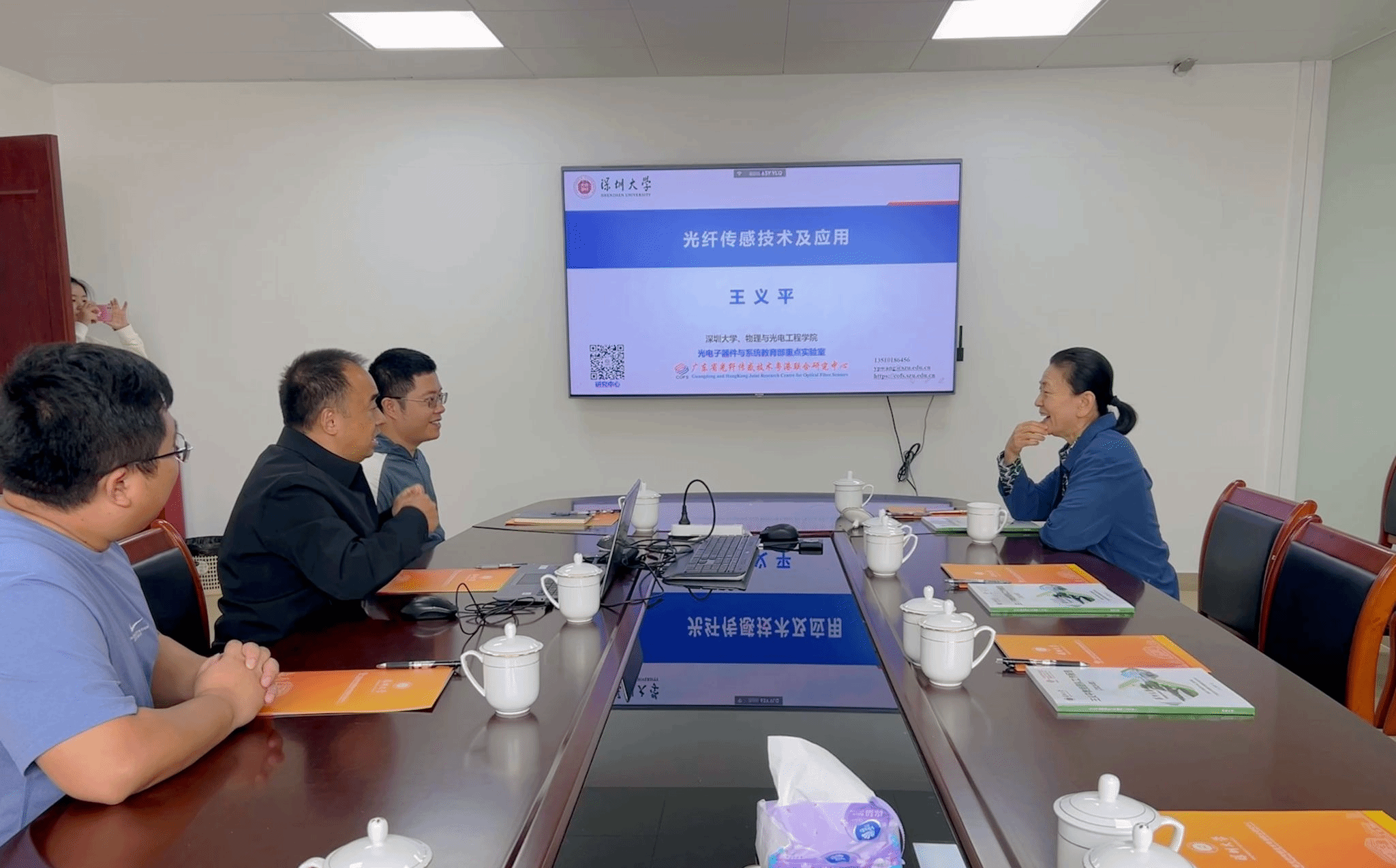 2025年10月23日上午,中国科学院院士、激光医学领域权威专家顾瑛院士莅临广东省光纤传感技术粤港联合研究中心调研指导。研究中心主任王义平教授、何俊教授、付彩玲副教授、刘德军助理教授热情接待交流。