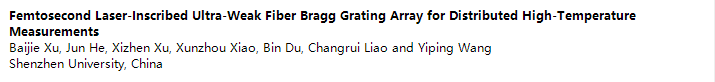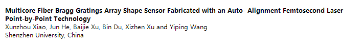 2021年8月23日至27日,国际光通信与网络会议(ICOCN)通过腾讯线上会议的形式召开。研究中心的许百杰同学和肖珣周同学分别在会上作了学术报告。经过会议专家的评审,许百杰同学作为第一作者完成的题目为“Femtosecond Laser-Inscribed Ultra-Weak Fiber Bragg Grating Array for Distributed High-Temperature Measurements”的论文,获得了本次会议的最佳学生论文奖(BEST STUDENT PAPER AWARD),肖珣周同学作为第一作者完成的题目为“Multicore Fiber Bragg Gratings Array Shape Sensor Fabricated with an Auto- Alignment Femtosecond Laser Point-by-Point Technology” 获得最佳海报论文奖(BEST POSTER PAPER AWARD)。