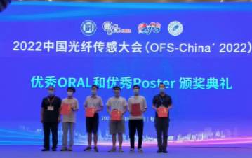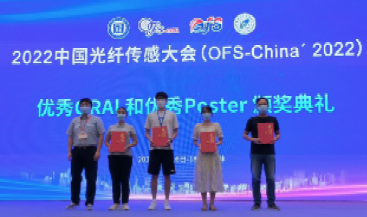 2022年8月17-18日,中国光纤传感大会(OFS-China´2022)在桂林召开。广东省光纤传感技术粤港联合研究中心的陈燕苹同学、邹梦强同学、许百杰同学和肖珣周同学分别在会上进行了学术报告。经过会议专家的评审,陈燕苹同学作为第一作者完成的题目为“High-sensitivity strain sensor based on a micro-air-cavity with asymmetrical tapered-fiber”的报告获得了本次会议的优秀ORAL奖。邹梦强同学、许百杰同学和肖珣周同学分别作为第一作者以“Femtosecond laser microprinting of a fiber-tip polymer probe sensor for high-sensitivity force measurement”、“飞秒激光制备全同弱反射光栅阵列及分布式高温传感应用”和“飞秒激光逐点法制备多芯光纤光栅阵列及三维形状传感应用”进行报告并获得优秀Poster奖。