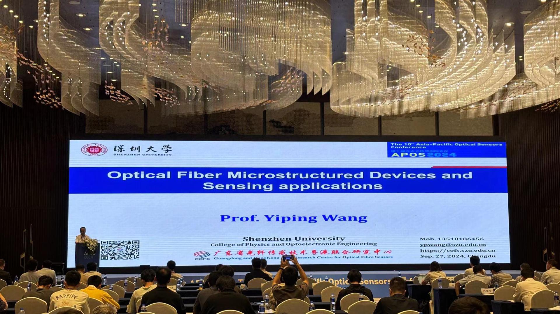 本次会议中,研究中心主任王义平教授受邀做题为《Optical Fiber Microstructured Devices and Sensing Application》的主题汇报。王义平教授的报告围绕光纤传感领域中的热点问题,系统介绍了研究中心在该领域的研究进展、主要成果以及未来发展方向。王义平教授精彩的汇报内容引发了参会者的广泛关注和讨论,展现了研究中心在该领域的科研实力。
