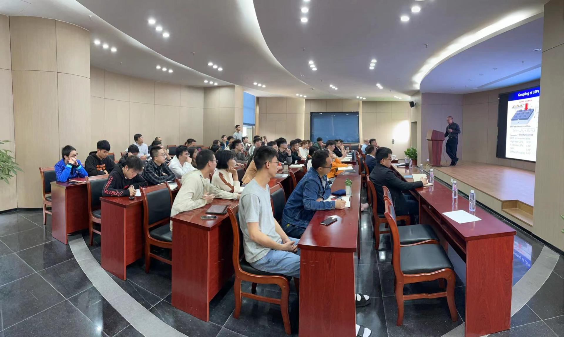 梅霆教授就纳米光学结构进行模场调控及其应用进行了深入浅出的讲解,为师生们分享了光学工程领域的前沿技术。在自由讨论环节,与会师生积极提问交流,反响强烈。