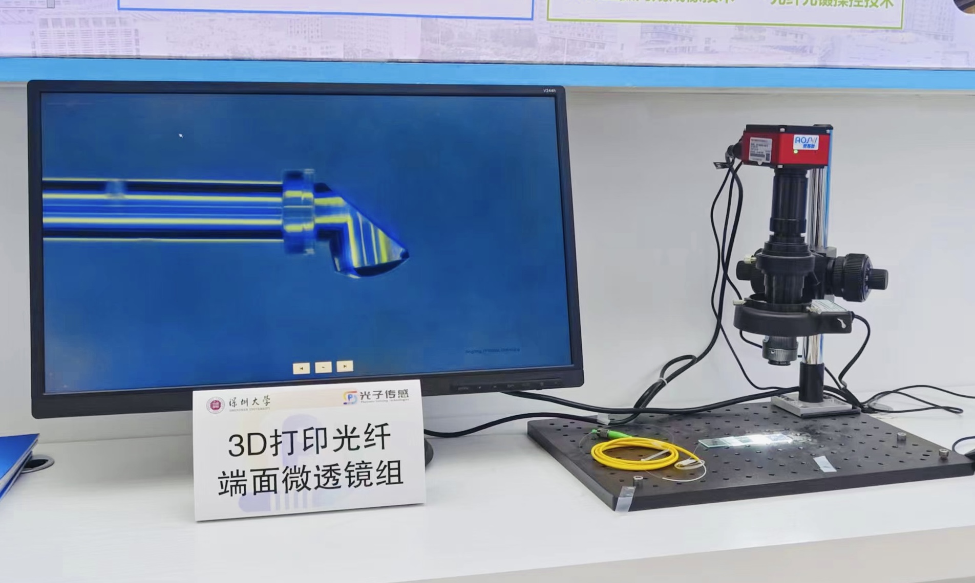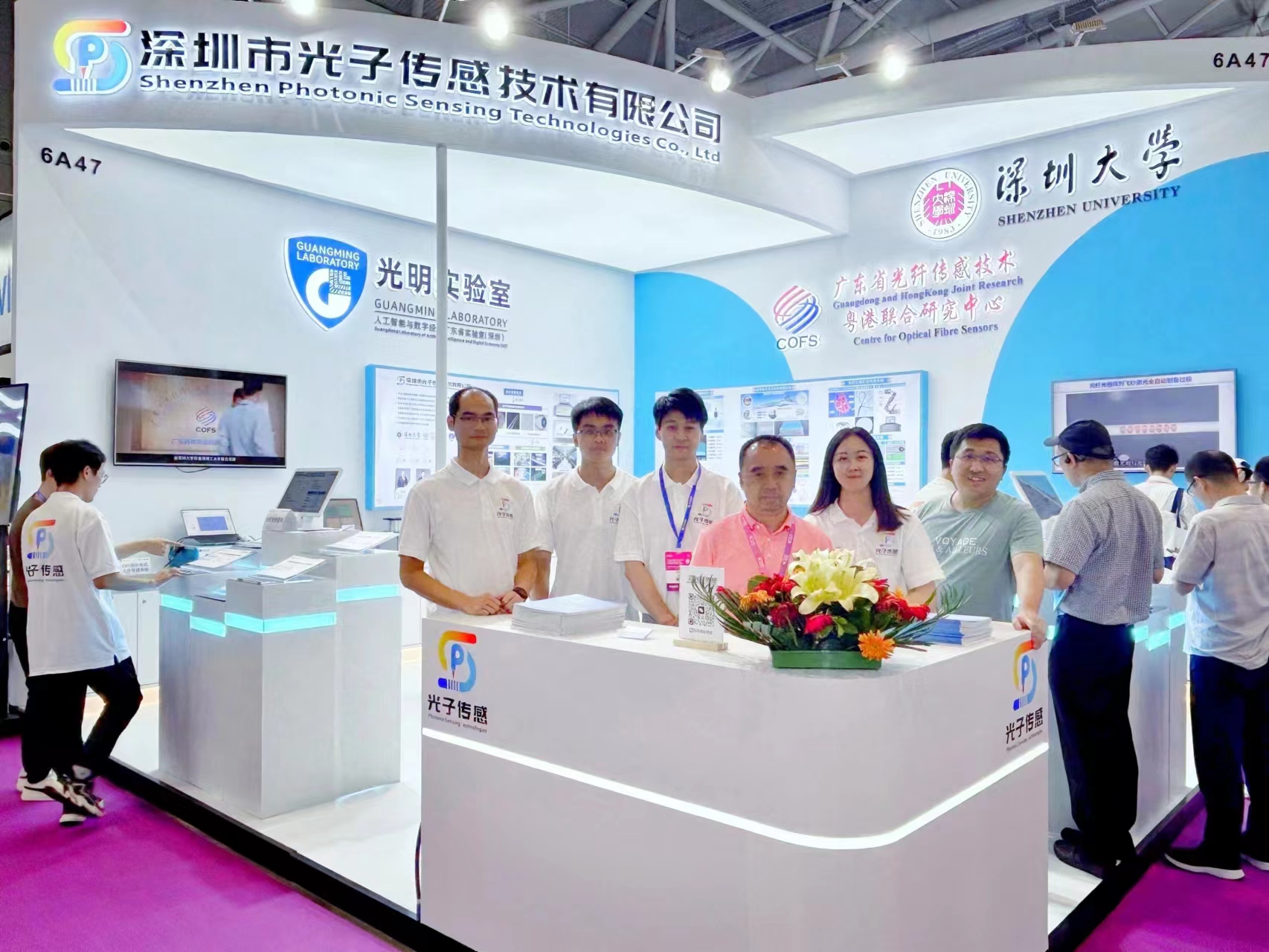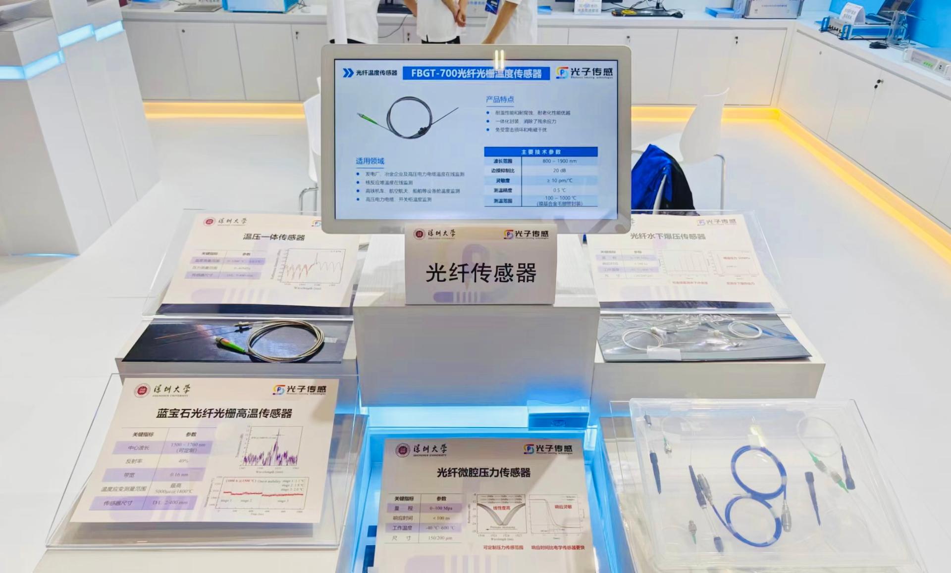在展位现场,王义平教授团队为参展观众现场演示了光纤三维形状传感系统、分布式光纤二维温场传感系统、分布式光纤声波传感系统、光纤麦克风、光纤FPI高速解调系统等国内领先的新一代光纤传感专业设备,以及飞秒激光全自动制备大规模光纤光栅阵列传感器、3D打印光纤端面微透镜组、蓝宝石光纤高温传感器、水下爆压传感器、色散补偿啁啾光纤光栅、高功率激光器光纤光栅等光纤传感器及核心组件,产品获得了同行的高度认可和赞扬。