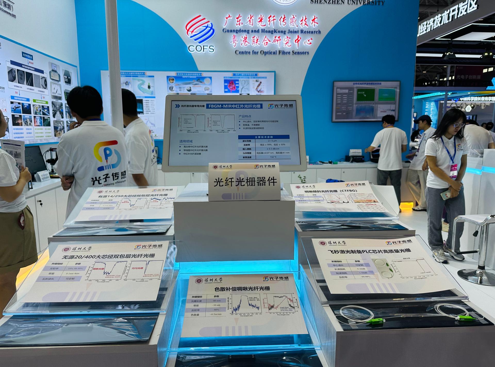 在2023年9月6 - 8日召开的CIOE中国光电博览会上,深圳大学物理与光电工程学院“广东省光纤传感技术粤港联合研究中心”王义平教授领衔的光纤传感创新团队,展出了大规模光纤光栅阵列飞秒激光全自动制备技术、光纤三维形状传感系统、分布式光纤传感系统等新一代光纤传感器件及系统,收获了同行的广泛关注和好评。