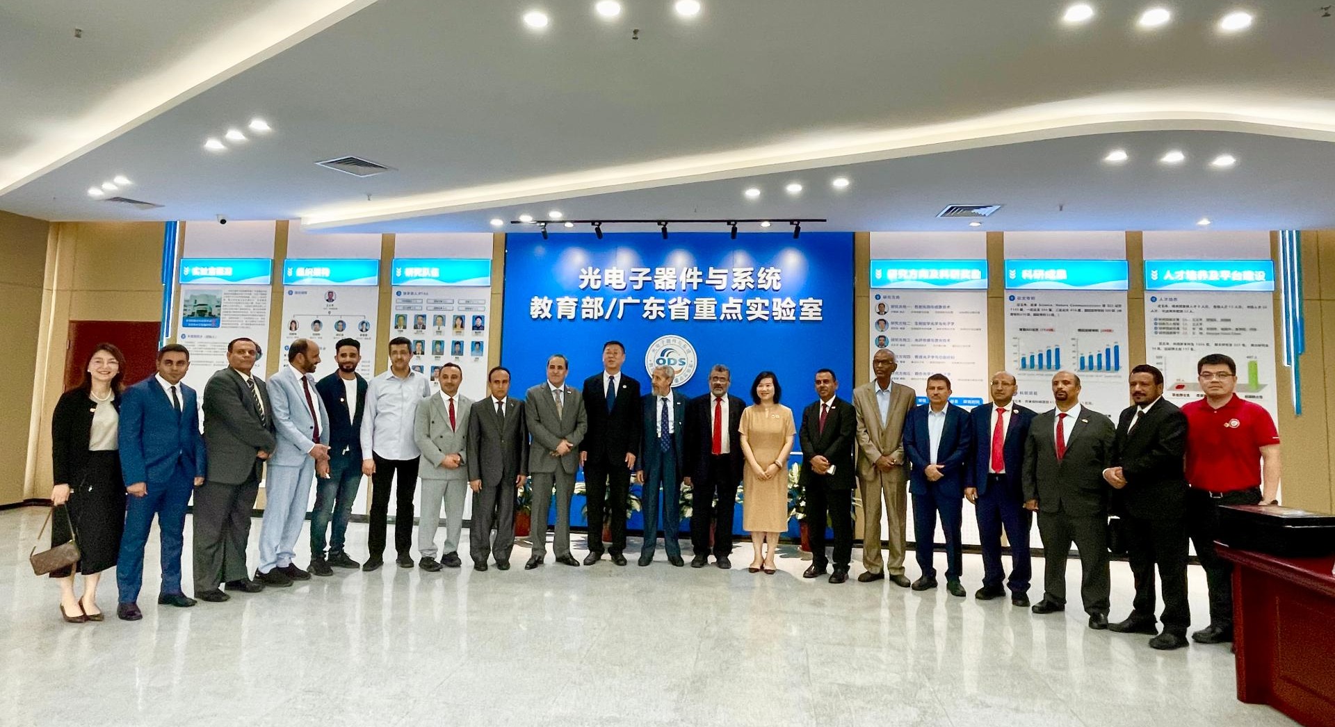 深圳大学教务部、学生部、国际交流与合作部、后勤保障部分别介绍学校人才培养、国际交流合作、基础设施建设、毕业生就业等情况。随后,双方就高等教育发展、留学生培养等方面展开交流。会前,也门改革集团党考察团一行参观了教育部(深圳大学)光电子器件与系统重点实验室和莅临研究中心考察指导,廖常锐教授陪同参观。廖常锐教授详细介绍光纤传感创新团队、光纤传感器件制备技术、极端环境光纤传感技术和生命健康光纤传感技术;演示了光纤三维形状传感系统、分布式光纤二维温场传感系统、分布式光纤声波传感系统、光纤麦克风、光纤FPI高速解调系统等国内领先的新一代光纤传感专业设备,以及飞秒激光全自动制备大规模光纤光栅阵列传感器、3D打印光纤端面微透镜组、蓝宝石光纤高温传感器、水下爆压传感器、色散补偿啁啾光纤光栅、高功率激光器光纤光栅等光纤传感器及核心组件。