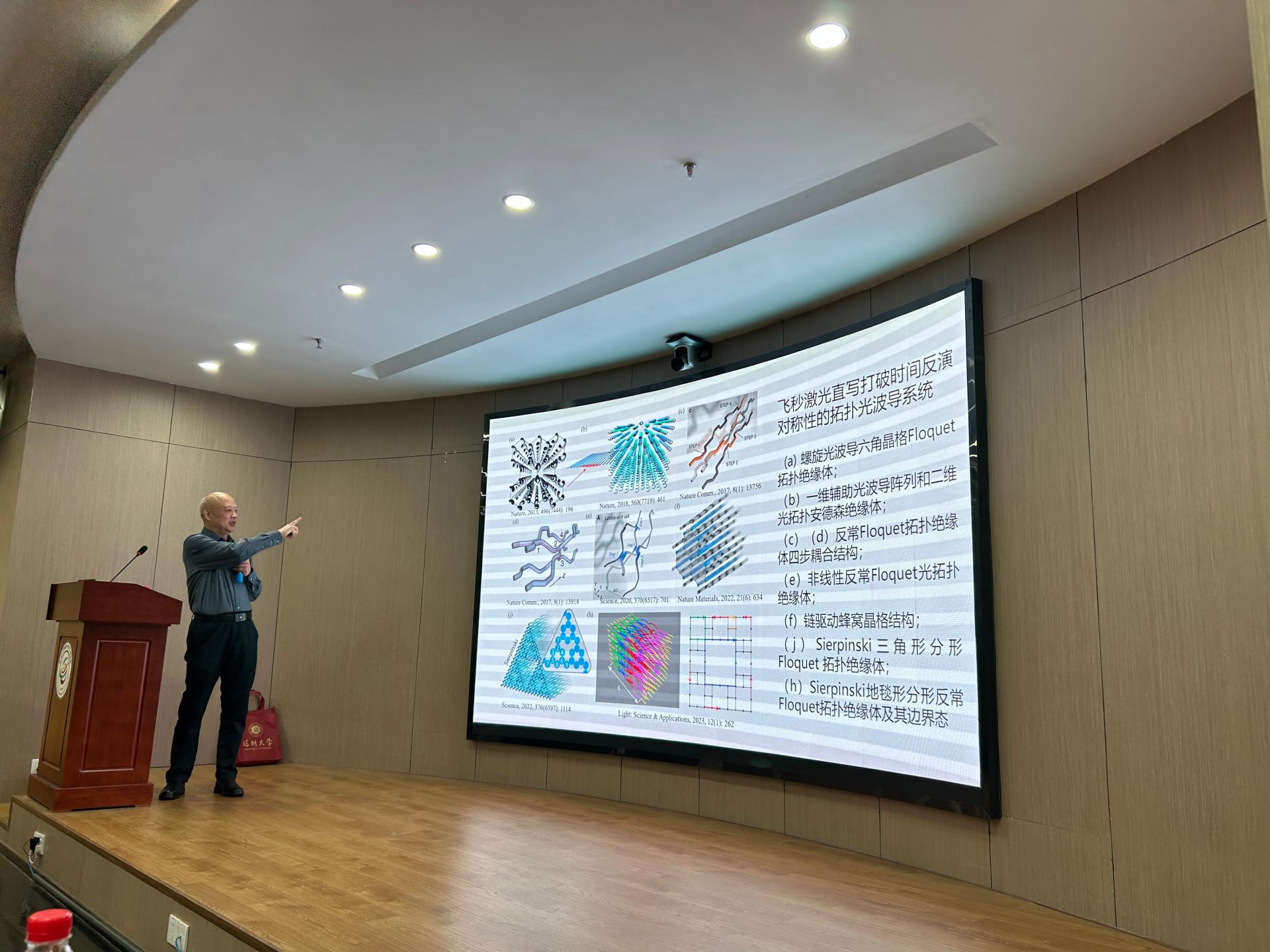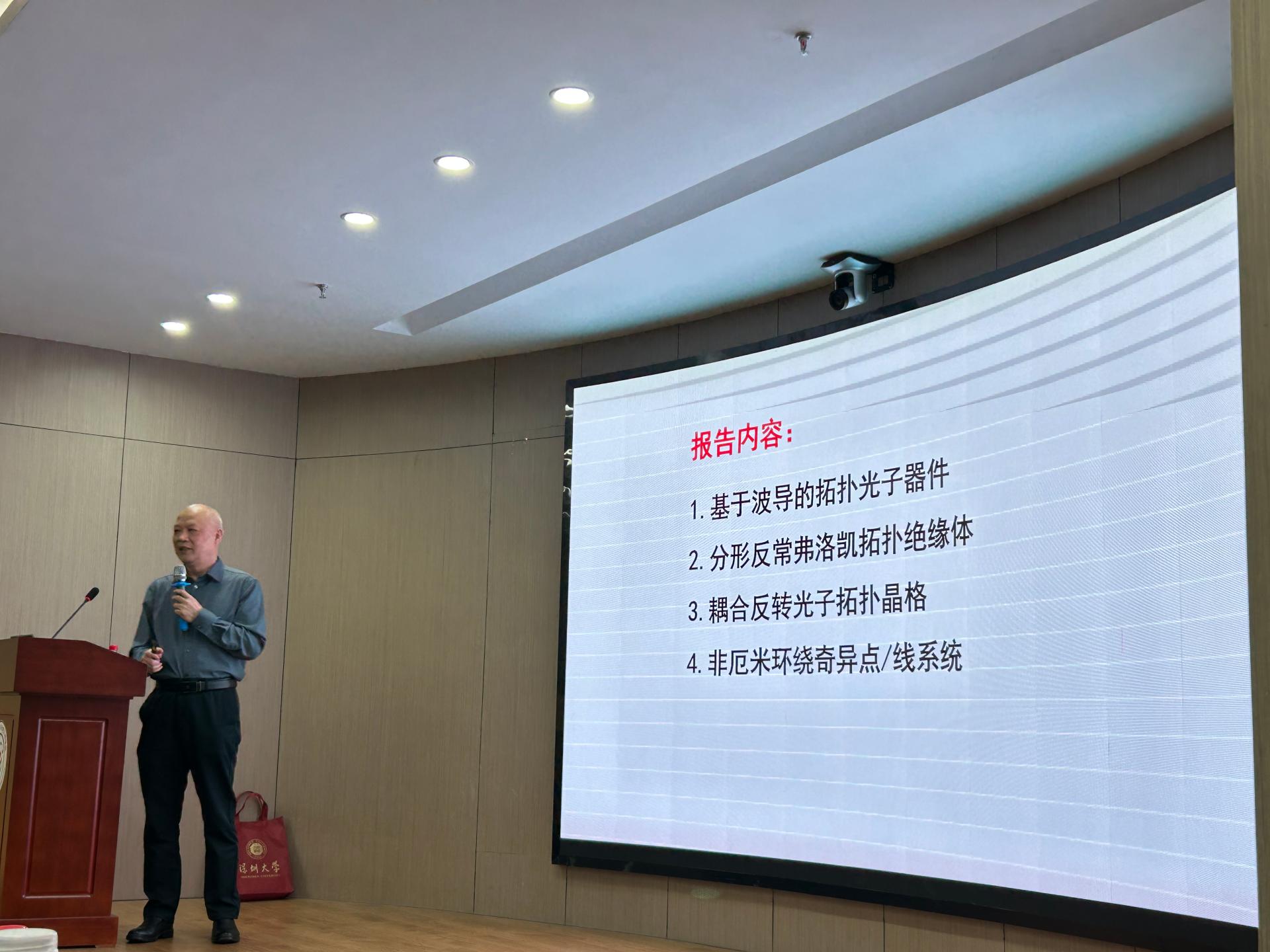 2025年3月15日,北京大学李焱教授应研究中心廖常锐教授邀请在深圳大学粤海校区光电子学研究所301多功能厅作了题为“飞秒激光直写三维拓扑光子器件”的学术报告。报告吸引学院众多师生参与,收获阵阵掌声。李焱老师是北京大学物理学院教授,政府特殊津贴专家,全国优秀科技工作者。从事飞秒激光三维微纳制造和光场调控研究,利用基于空间光调制器和超表面的焦场整形提高飞秒激光三维微纳制造性能。近期在透明材料内部制备了可重构定向耦合器、三维光量子芯片和三维拓扑光子学器件等。
